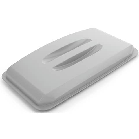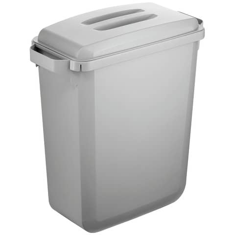Abfall-/Wertstoffbehälter mit Deckel, DURABIN ECO. Rechteckige Form. Vielseitige Helfer für das Abfallmanagement sowie für Transport und Lagerung von Rohstoffen in Gewerbe und Industrie. Ideal für Müllsammlung und Recycling-Materialien im Innenbereich. Mit robusten Tragegriffen für einfachen Transport. Haltevertiefungen auf der Bodenunterseite zum sicheren Entleeren. Mit Klemmschlitzen für Abfallsäcke. Der Behälter kann ineinander gestapelt werden. Gewicht: 2.380 g. Inklusive Deckel mit 2 Griffmulden oben für leichtes Abnehmen. Größe BxHxT): 501 x 58 x 272 mm. Behälter und Deckel aus recyceltem Polypropylen (PP)-Kunststoff, zertifiziert mit dem Umweltzeichen ¿Blauer Engel¿. Volumen: 60 Liter. Größe (BxHxT): 590 x 600 x 282 mm. Farbe: grau.