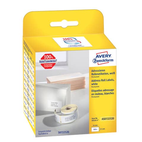 Adressetiketten 25x54mm weiß ZWECKFORM AS0722520 500ST perman.