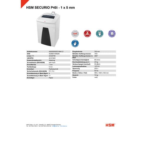 Hersteller: HSM GmbH + Co. KG, Austraße 1 - 9, 88699 Frickingen, Deutschland, info@hsm.eu
