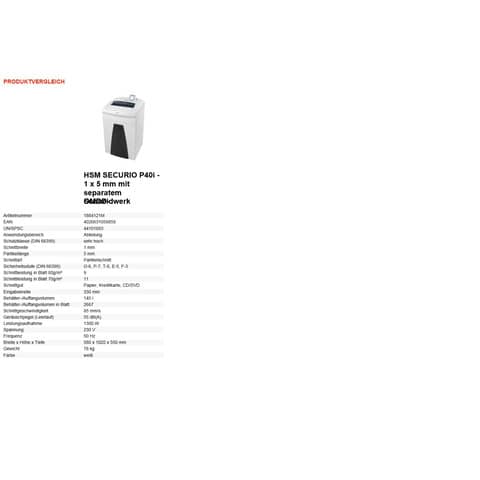 Produktinformationen "Aktenvernichter Securio P40i weiß HSM 1884121M 1x5mm"