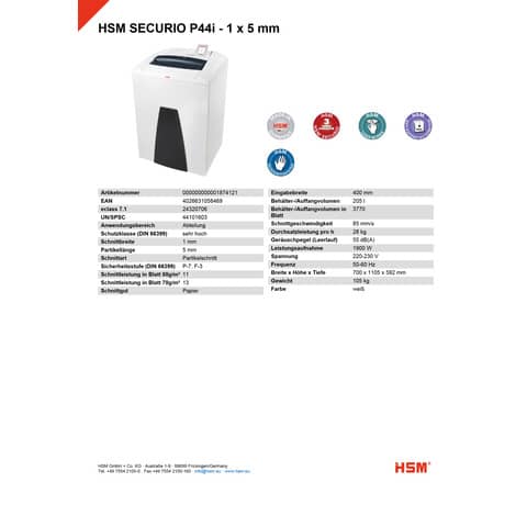 Produktinformationen "Aktenvernichter Securio P44i weiß HSM 1874121 1x5mm"