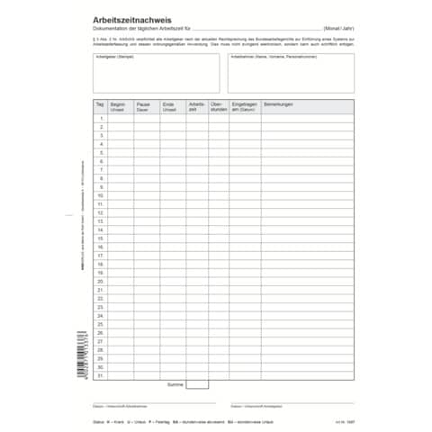 Weiterführende Links zu "Arbeitszeitnachweis A4 24Bl. RNK 1337"