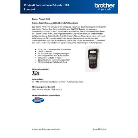 Weiterführende Links zu "Beschriftungsgerät elektr. schwarz BROTHER PTH110ZG1"