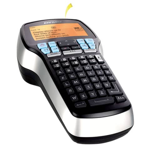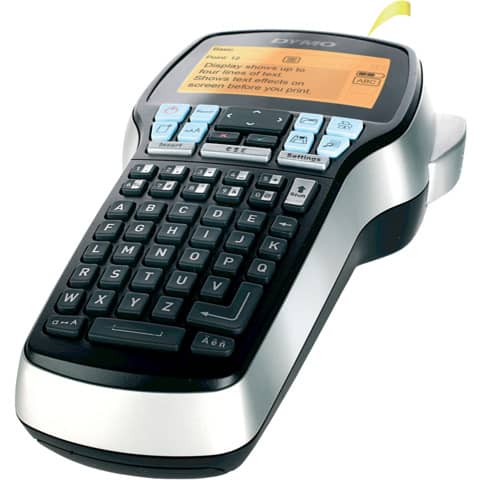 Beschriftungsgerät zum Erstellen von 6, 9, 12 und 19 mm breiten D1-Etiketten. Großes 4-zeiliges Display mit Hintergrundbeleuchtung. Schnelle Auswahl von Beschriftungsfunktionen. 8 Schriftarten, 7 Schriftgrößen, 10 Schriftstile. Text geben Sie mit der gewohnten ABC-Tastatur ein, und es stehen Spezialfunktionstasten für Satzzeichen, Währungs- und andere Sonderzeichen zur Verfügung. Mehrfachdruck, fortlaufende Nummerierung. Vorgabe der Etikettenlänge, manueller Bandabschneider. Batterie- oder Netzbetrieb. Lieferumfang: LabelManager 420P, Litihum-Ionen-Akkusatz, Netzteil, inkl. 4 D1-Etiketten: 6mm schwarz auf transparent, 9mm schwarz auf gelb, 12mm schwarz auf weiß, 19mm schwarz auf rot.