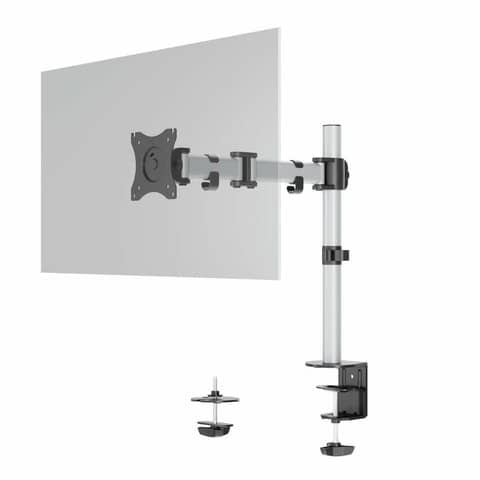 Tischsäule für einen Monitor mit verstellbarer Höhe, Drehung und Neigung des Bildschirms. Monitor Halter für 1 Bildschirm inklusive individueller Befestigungsmöglichkeit mittels Tischdurchführung und Tischklemme. Ergonomisches Arbeiten durch individuelle und leichtgängige Einstellung von Höhe, Neigung und Ausrichtung des Monitors. Flexibel um 360°drehbar für Arbeiten im Hoch- oder Querformat. Der Arm lässt sich flexibel durch drei Gelenke auf 43 cm ausziehen und bis 180° schwenken. Stufenlose Höhenverstellung des Bildschirms an einer 45 cm hohen Säule. Universelle VESA-Halterung (75 x 75 mm oder 100 x 100 mm). Für Standard Monitore bis 27 Zoll und 8 kg. Kabelmanagement: Das Monitorkabel wird durch Klemmen am Monitorhalter entlang geführt und schützt so vor Kabelbruch.