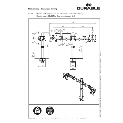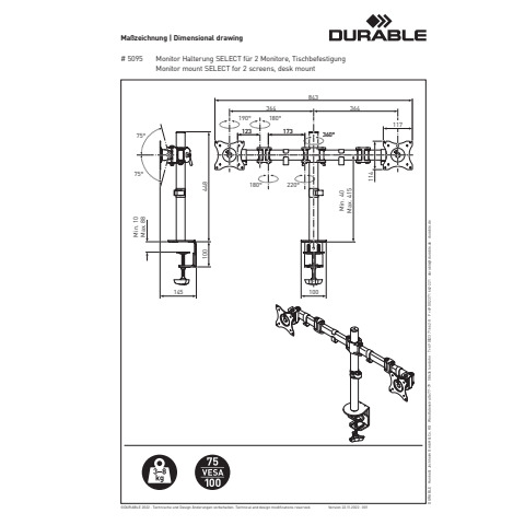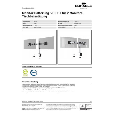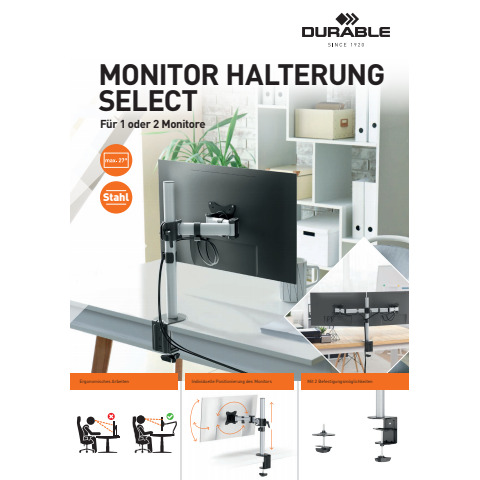 Weiterführende Links zu "Bildschirmträger SELECT 2 Monitor 27Zoll DURABLE 5095 23 Tischklemme Stahl"