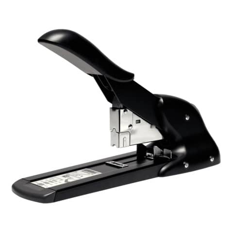 Blockheftgerät HD110, mit Vorderlademagazin, besonders leistungsstarker Blockhefter für müheloses Heften dank speziellem Hebelmechanismus. Heftklammertyp: 23. Heftleistung/Blatt: 11mm/110. Einlegetiefe: bis 66m einstellbar. Material: Stahl mit Kunststoffgriff. Farbe: schwarz/chrom.