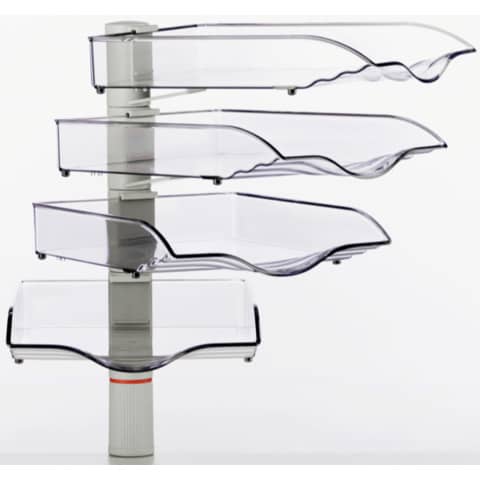 Belegefach NOVUS CopySwinger IV lichtgrau Schalenset. Um 360 ° schwengbar, Tragkraft 3 kg, Schale läst sich längs oder quer montieren. Werkstoff: Kunststoff, Metall. Verwendung für Papierformate: B4. Anzahl der Fächer: 4 Stück. Größe (B x H x T): 262 x 500 x 410 mm. Lieferung mit Universalzwinge 1 (18-74 mm). Farbe: lichtgrau. Art der Verpackung und Inhalt: Karton mit 1 Stück.