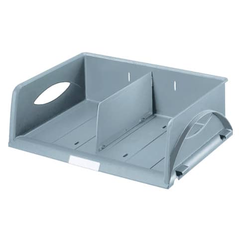 Leitz Briefkorb Sorty. Mehrfach übereinander stapelbar, mit grau-transparenter, auswechselbarer Trennwand und Beschriftungsschild. Material: Polystyrol (PS). Für A4- und C4-Querformate. Format: 408 x 295 x 127 mm. Farbe: grau. Zweifache Unterteilung für z. B. DL-Formate möglich. Lieferung inkl. einer Trennwand.