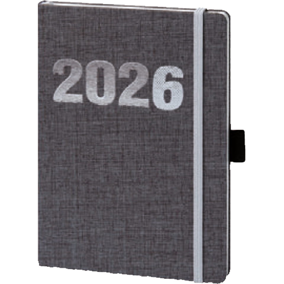 Buchkalender V-Book, A6, 1W/2S, Leinenoptik, grau BSB 02-0348