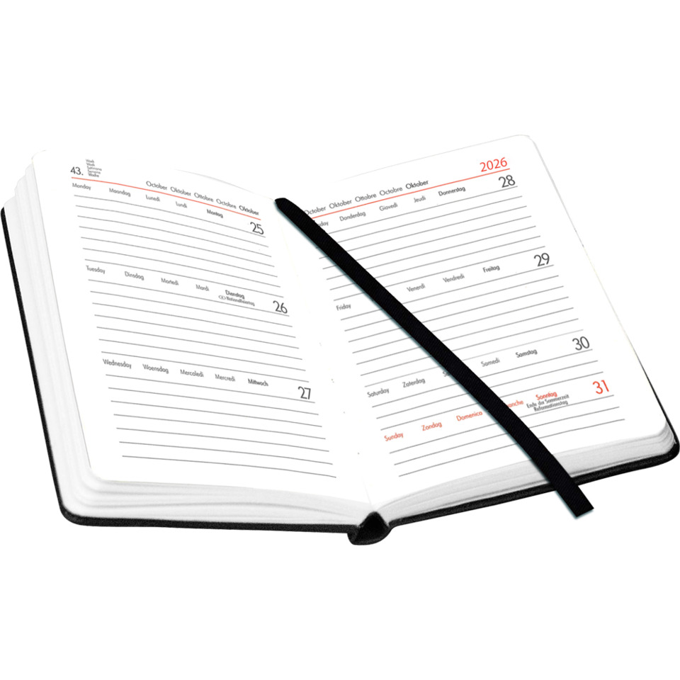 Praktisch und stilvoll: Der BSB V-Book Buchkalender im handlichen A6-Format (ca. 9 x 14 cm) überzeugt mit einem edlen Einband in Leinenoptik, Jahreszahlprägung und farblich passendem Gummiband. Der Kalender bietet eine Wochenübersicht auf zwei Seiten, ergänzt durch nützliche Infoseiten. Mit 57 Kalenderblättern und 39 zusätzlichen Notizseiten ist er ideal für die tägliche Organisation – kompakt, übersichtlich und elegant.