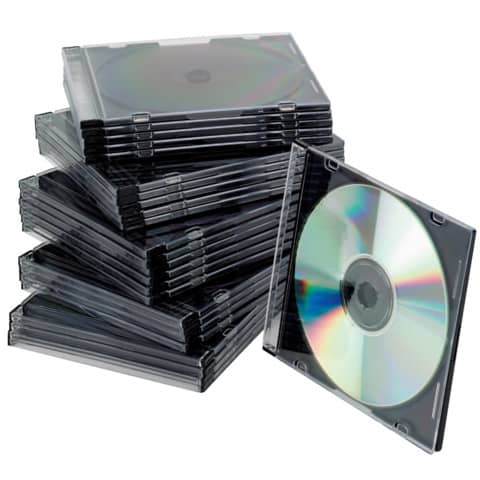 Leerhüllen zur Aufbewahrung von CDs/DVDs. Aus Kunststoff.