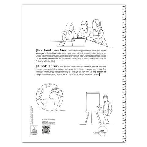 zweiseitig im Aussehen und Nutzen, Der Two in One Collegeblock bietet 40 linierte und 40 karierte Blätter, 160 Seiten Flexibilität, durch 2 Deckblätter sehr benutzerfreundliche Unterscheidung und Zuordnung der Innenteile, stabile Karton-Unterlage, Microperforation und Abrisshilfe, 4-fach-Ablagelochung