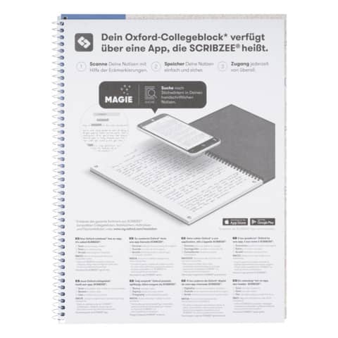 Collegeblock A4+/80BL liniert weißer Rd OXFORD 400159364 Recycling