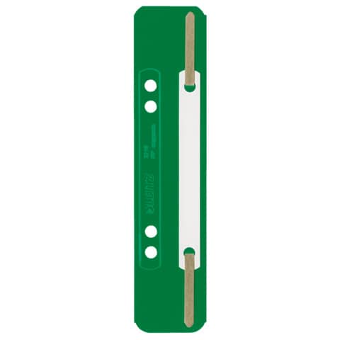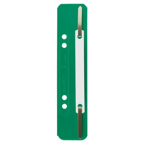 Einhängeheftstreifen, kurz. Mit Lochung 6 + 8 cm, Aufreihband aus Metall, Deckschiene aus Kunststoff. Material: Polypropylen (PP). Format: 35 x 158 mm. Farbe: grün