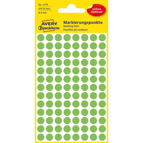Etiketten Ø8 mm leuchtgrün 416 Stück ZWECKFORM 3179 permanent haftend
