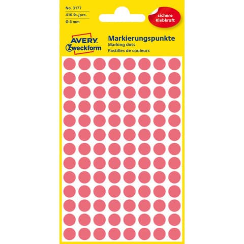Etiketten Ø8 mm leuchtrot 416 Stück ZWECKFORM 3177 permanent haftend