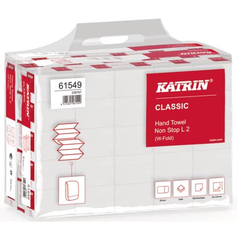 Weiche, hochwertige Papierhandtücher mit hoher Reißfestigkeit und Saugfähigkeit für ein hygienisches, effektives und zugleich sanftes Händetrocknen. 2-lagige, weiße Multifold-Handtücher mit W-Falz (4 Flächen) und breitem Blattformat (24 cm). Empfohlen für alle niedrig- bis hochfrequentierten Waschräume und normale Anwendererwartungen. Die Einzelblattentnahme in Kombination mit dem KATRIN Falthandtuchspender M gewährleistet eine hygienische, berührungslose Anwendung und einen kontrollierten, sparsamen Verbrauch. Die einzigartige Windrad-Prägung verbindet attraktives Design mit ausgereifter Technik und bietet ausgezeichnete Absorptionseigenschaften bei angenehmer Weichheit. Das smarte, kompakte Handy Pack Format mit integriertem Tragegriff ermöglicht das komfortable Tragen von Tausenden Handtüchern mit nur einer Hand. Es lässt sich durch die integrierte Perforation leicht öffnen und bietet optimalen Schutz vor Feuchtigkeit. Die Folienverpackung ist zu 100 % recycelbar und enthält mindestens 30 % Recyclinganteil (= "GREEN PACK"). Zertifiziert mit dem EU Ecolabel und dem Nordic Ecolabel. Dermatologisch getestet.