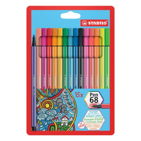 Fasermaler Pen 68 Etui 15 Stück STABILO 6815-2 10 + 5 Stück neon
