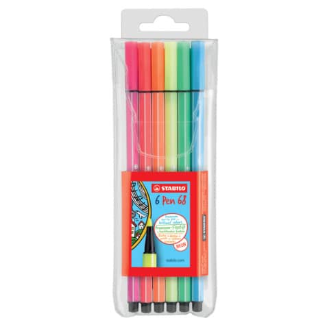 Fasermaler Pen 68 Etui 6 Stück STABILO 6806-1 Neonfarben mehr