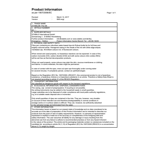 | Hersteller: | Stabilo International GmbH, Schwanweg 1, 90562 Heroldsberg, Deutschland, info@stabilo.com |
