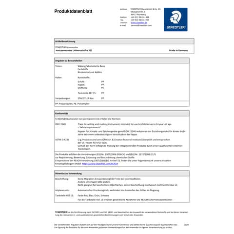 | Hersteller: | STAEDTLER SE, Moosäckerstraße 3 90427 Nürnberg Deutschland, info@staedtler.com www.staedtler.com |