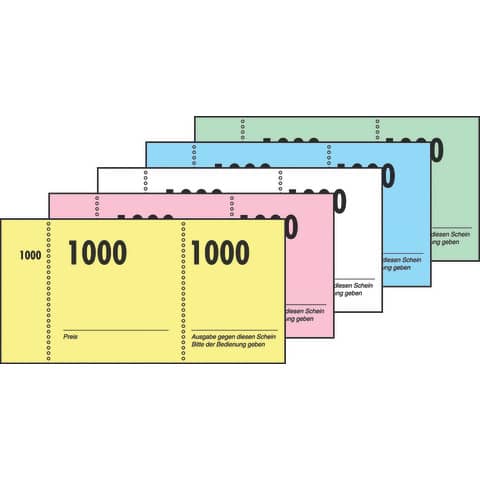 Praktische Nummernblocks für viele Gelegenheiten - unentbehrlich z. B. als Garderobennummer, Kuchenblock oder für Verlosungen! Sortiert in 5 verschiedenen Farben. Durchgehende Nummerierung von 1-1000, jeder Block enthält je 100 Nummern. Dank der hervorragenden Schnitt-Steg-Perforationen lassen sich jedes Blatt und jeder Abriss schnell und sauber abtrennen.