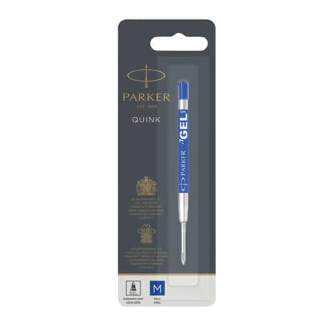 Gel-Tintenrollermine Parker Quink Gelmine. Verwendung für Produkt: für Gelschreiber und Kugelschreiber. Typbezeichnung der Mine: Gelmine. Art der Schreibflüssigkeit: Geltinte, lichtbeständig gegeben, wasserfest. Ausführung Mine: Metallspitze, M, blau. Ausführung des Inhalts mit Packung: 1 Stück im Blister.
