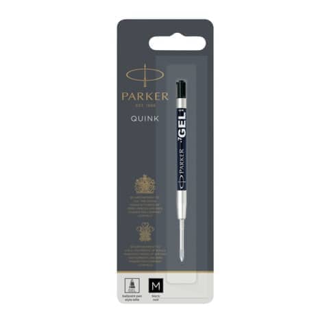 Gel-Tintenrollermine Parker Quink Gelmine. Verwendung für Produkt: für Gelschreiber und Kugelschreiber. Typbezeichnung der Mine: Gelmine. Art der Schreibflüssigkeit: Geltinte, lichtbeständig gegeben, wasserfest. Ausführung Mine: Metallspitze, M, schwarz. Ausführung des Inhalts mit Packung: 1 Stück im Blister.