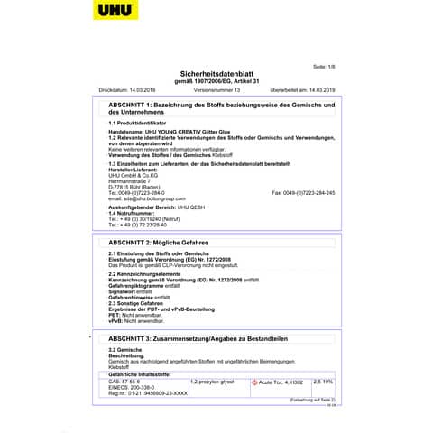 | Hersteller: | UHU GmbH & Co. KG, Herrmannstr. 7, 77815 Bühl, Deutschland, info@uhu.com |
