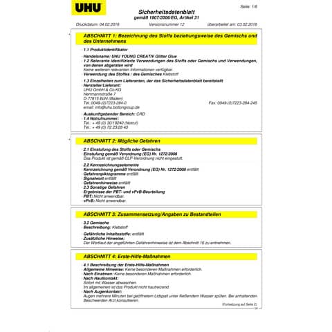 | Hersteller: | UHU GmbH & Co. KG, Herrmannstr. 7, 77815 Bühl, Deutschland, info@uhu.com |