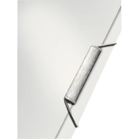 Leitz Eckspannermappe Style mit 3 Klappen am Unterdeckel. Edelstahlbeschichteter Verschluss mit Gummizug, mit soft gebürsteter Oberfläche. Material: Polyproplyen (PP). Für bis zu 150 Blatt. Format: A4, 320 x 235 mm. Farbe: arktis weiß.