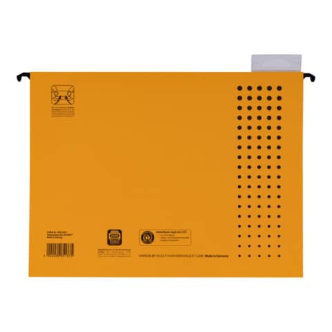 Exklusiver 230g/qm starker Canson® Karton verhindert das Ausreißen des Kartons bei intensivem Gebrauch. Für Lose-Blatt-Ablage, seitlich offen. Komfort-Sichtreiter mit aufklappbarer Rückwand und auswechselbarem Beschriftungsschildchen. Schlitzstanzung für Einhängeheftstreifen 27 592. Extrem steife Metallhängeschienen mit pulverbeschichteten Enden. Größe: 318 x 6 x 240 mm (B x T x H). Beschriftungsmöglichkeit mit ELBA print. Für A4. Umweltzeichen "Der Blaue Engel" und "Paper by Nature".