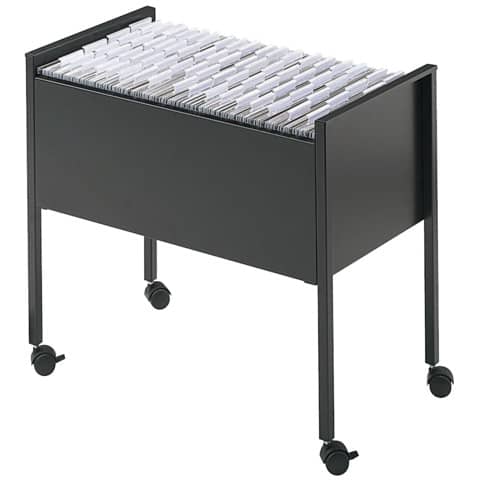 Hängemappenwagen ECONOMY 80 A4. Produktverwendung: für ca. 80 Hängemappen A4. Mit 4 Rollen, davon 2 feststellbar. Werkstoff: epoxidharzbeschichteter Stahl. Größe (B x H x T): 655 x 592 x 368 mm. Farbe: schwarz. Lieferung: demontiert mit Montageanleitung.