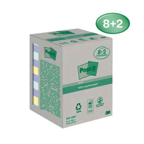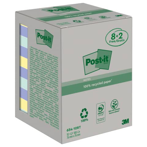 Haftnotiz 76x76mm 10x100Bl Recycl. sort. POST-IT 654RCP10