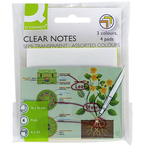 Produktinformationen "Haftnotizblock 4x50BL PP transp-sortiert Q-CONNECT KF10371 76x76mm"