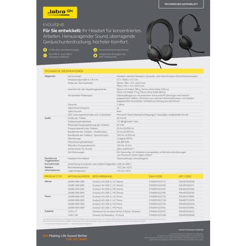Headset Evolve2 40 MS Stereo JABRA 24189-999-899 m. Kabel USB-C