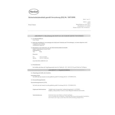 | Hersteller: | Henkel AG & Co. KGaA, Henkelstraße 67 40589 Düsseldorf Deutschland, corporate.communications@henkel.com www.henkel.de |