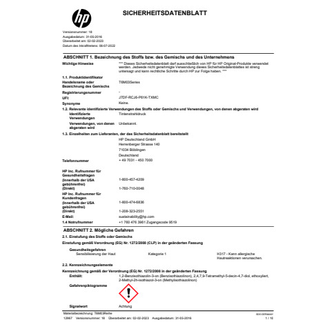 Hersteller: HP Deutschland GmbH, Herrenberger Straße 140, 71034 Böblingen, Deutschland, firmen.kunden@hp.com