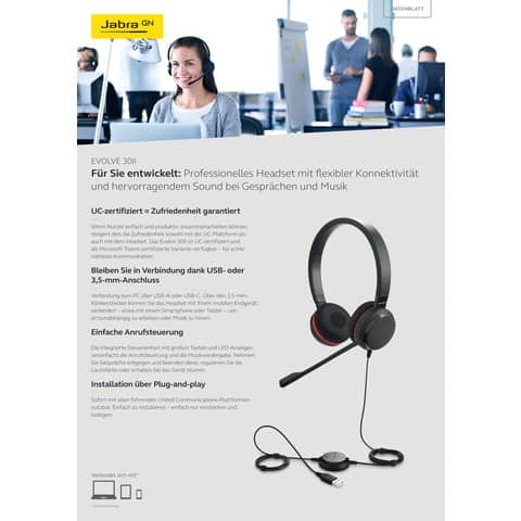 Weiterführende Links zu "Jabra Evolve 30 II UC Mono GN AUDIO 143553 5393-829-309"