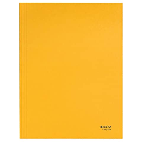 Leitz Jurismappe Recycle. Hergestellt aus zu 100% recyceltem Karton und zu 100% recycelbar. Langlebig und robust. Mit 3 vollflächig verklebten Klappen am Unterdeckel. Kein Verpackungsabfall, Kennzeichnung nur mittels Etikett. Material: 100% recycelter Karton 430 g/qm (RC). Kapazität: bis zu 250 Blatt DIN A4. Format: für DIN A4, 242 x 318 mm. Farbe: gelb.