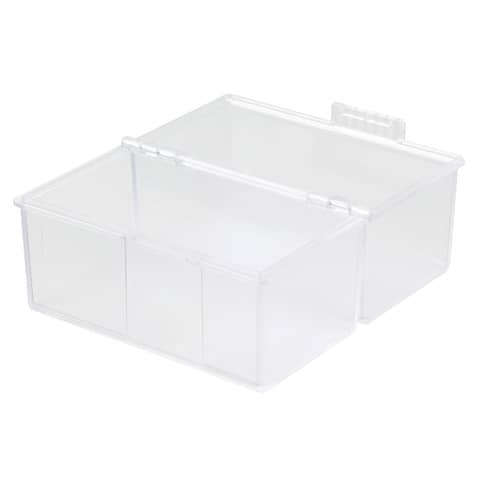 Karteibox DIN A7 quer, für max. 300 Karten. Der ideale Ordnungshelfer für Büro und unterwegs. Qualitativ hochwertige Ausführung mit Stahlscharnier sowie Schnappverschluss. Der Deckel lässt sich komplett umklappen und fungiert auch als zusätzlicher Karteitrog. Fassungsvermögen: von 220 Karten (190g/m²) bis max. 300 Karten (100g/m²). Lieferung ohne Inhalt. Verwendung für Kartenformat: DIN A7 quer. Zubehör optional: Register A-Z DIN A7, quer (Art.-Nr. 987). Außenmaße (B x T x H): 121 x 74 x 101 mm. Material: hochwertiger Kunststoff, Polystyrol (PS). Farbe: transluzent-klar.