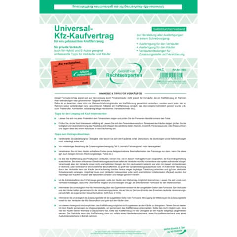 Produktinformationen "Kaufvertrag gebrauchte KFZ A4 RNK 586 SD 6Bl"