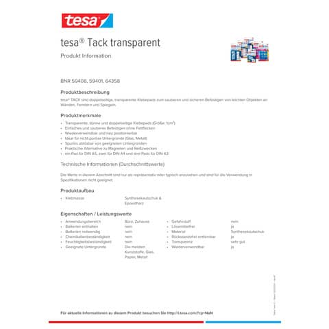 Weiterführende Links zu "Klebepads Tack doppels.transp. TESA 59401-00000-01 200St"