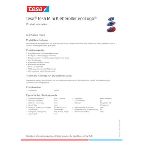 Kleberoller 2ST Mini rot/blau TESA 59820-00000-00 6m x 5mm