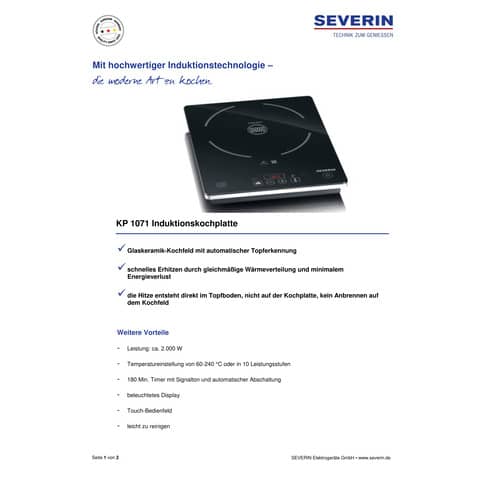 Weiterführende Links zu "Kochplatte Induktion schwarz SEVERIN KP 1071 Ø21cm"