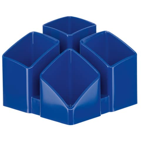 Schreibtischköcher SCALA. Exklusives Design trifft auf Funktion. Hochglänzende Farbe. Hochwertiger Schreibtischköcher mit 4 Fächern inkl. Brief- und Kartenfach. Die 4 Fächer mit unterschiedlichen Höhen bieten eine optimale Unterbringung und Übersicht Ihrer Büroutensilien. Individuell kombinierbar und erweiterbar. Robust, standfest und stabil. Rutschfest durch möbelschonende Gummifüße. Made in Germany. Außenmaße (B x H x T): 125 x 100 x 125 mm. Material: hochwertiger Kunststoff, Polystyrol (PS). Farbe: blau.