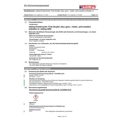 | Hersteller: | edding International GmbH, Bookkoppel 7 22926 Ahrensburg Deutschland, www.edding.com |