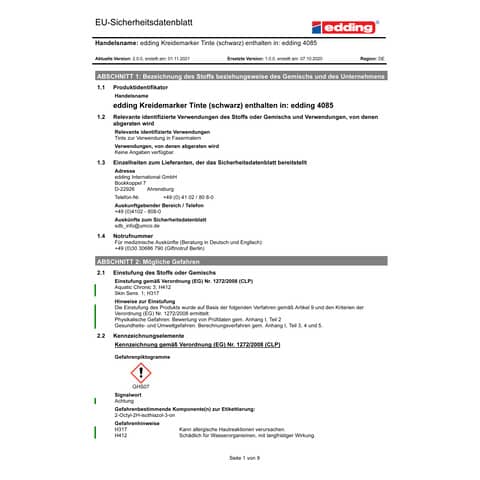 | Hersteller: | edding International GmbH, Bookkoppel 7 22926 Ahrensburg Deutschland, www.edding.com |