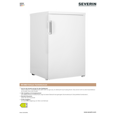 Weiterführende Links zu "Kühlschrank mit Griff 133l/55cm weiß SEVERIN VKS 8843"